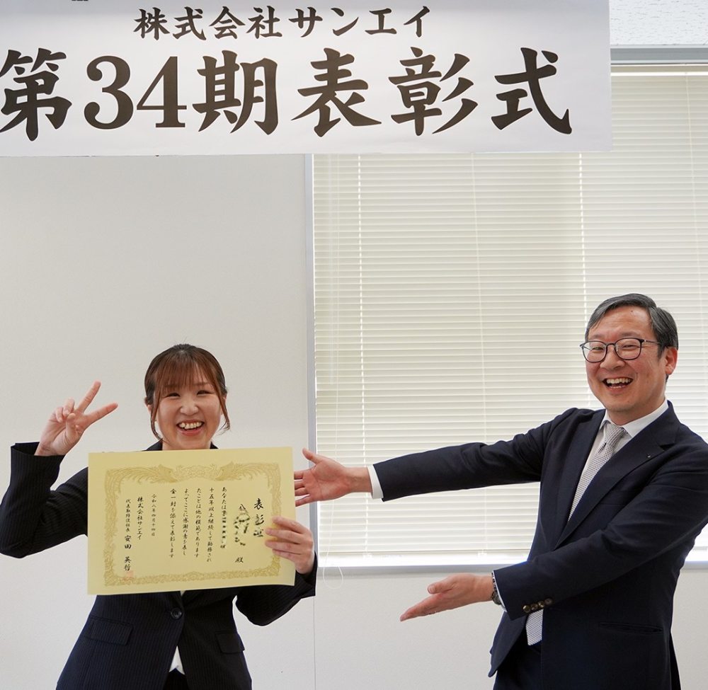本日は、表彰式に伴い、永年勤続表彰のスタッフ、fun wayマスター受賞者が本社に集結しました(*´▽`*) 会場は多くのスタッフが集まり、笑顔が絶えない楽しい時間になりました♪ 企業理念を体現してくれたスタッフの皆さん、永年サンエイを支えてくれたスタッフの皆さん、おめでとうございます! 会社HP・fun wayマスターページも更新しております。 ぜひご覧ください☆彡 https://sanei-nt.co.jp/funwaymaster/
