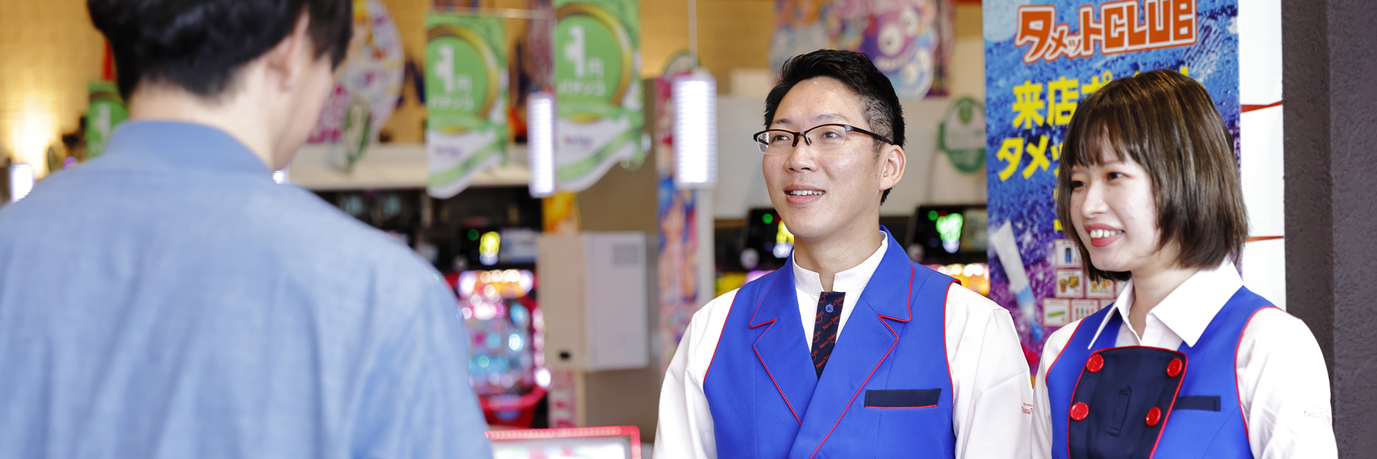 | 主な業務 | ホールの接客業務を中心とした店舗運営 接客業務、店舗運営全般、遊技機設置・メンテナンス、設備メンテナンス、賞品管理、育成・指導など 幹部候補として、ホール業務習得後は店舗運営、管理業務に携わっていきます。 最初は先輩社員と一緒に業務習得を進めていきますので、未経験者の方もご安心ください。 |